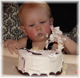 I want to share some sweet pictures with you. Here is Piper enjoying her very own cake on her 1st birthday.